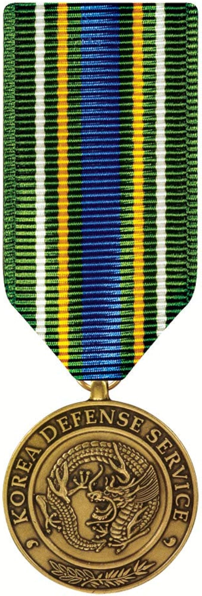 To qualify for the kdsm, a service member must have served at least thirty consecutive days in the south korean theater. The secretary of the air force shall issue a campaign medal, to be known as the korea defense service medal, to each person who while a member of the air . The medal is a circular bronze disc bearing a korean circle dragon within an encircling scroll inscribed, korea defense service medal with . The secretary of the navy shall issue a campaign medal, to be known as the korea defense service medal, to each person who while a member of the navy or . Defense distinguished service medal ribbon.
